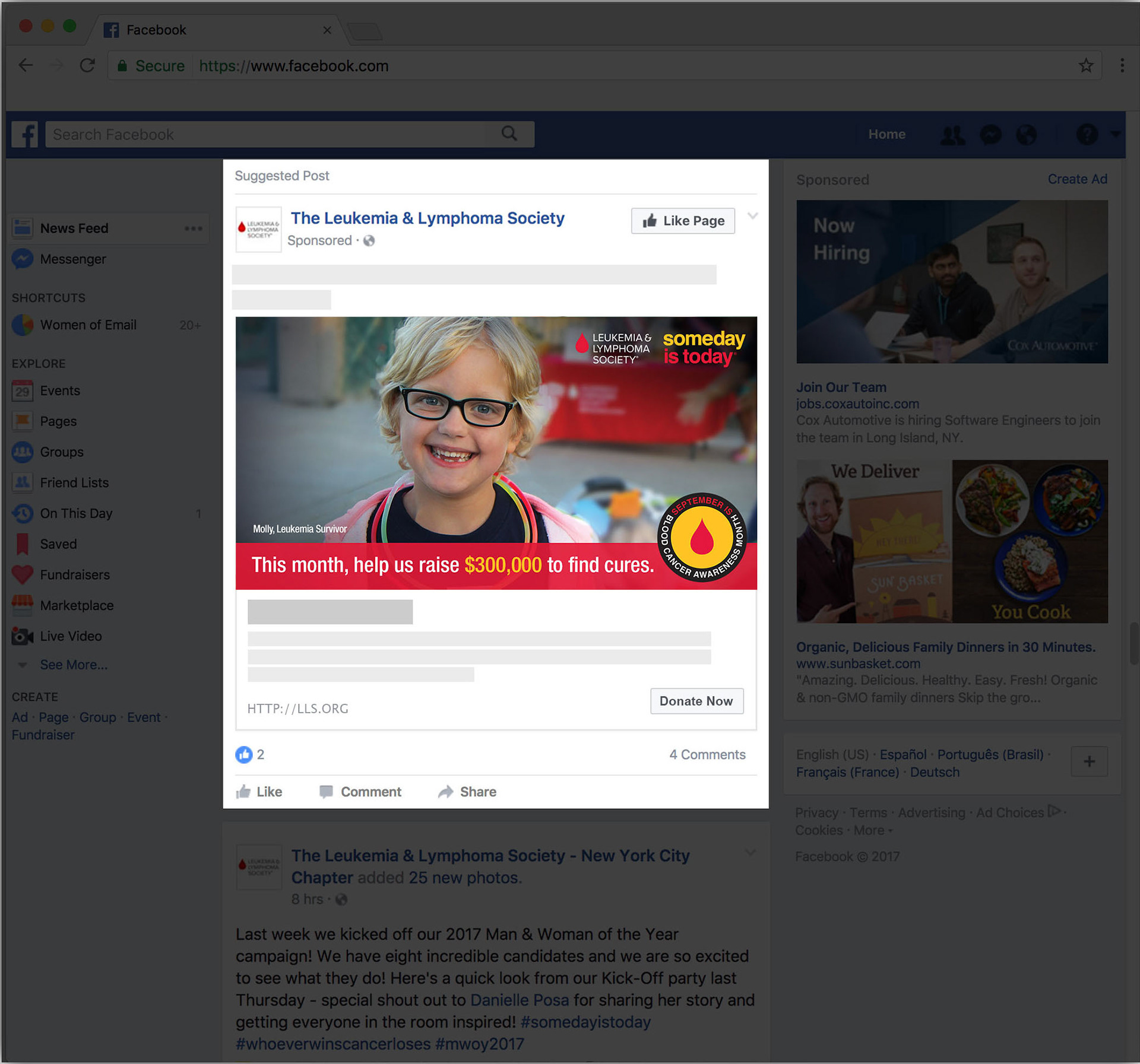 Social media assets created for Facebook, Twitter, LinkedIn, etc. to promote news and events for GTT and Leukemia & Lymphoma Society.